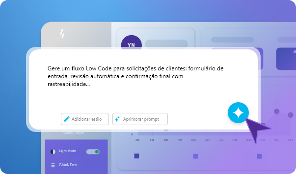 Os processos de cadastro de clientes e a subscrição de apólices constituem a base para o crescimento comercial da companhia. Com o desenvolvimento conversacional por meio de prompts, você habilita a área de negócios (Citizen Developers) a prototipar fluxos de onboarding em minutos e criar modelos de subscrição específicos. Utilizando uma plataforma Low Code com IA, sua organização pode lançar produtos sob medida para novos nichos, sem precisar esperar longos ciclos de desenvolvimento de TI.